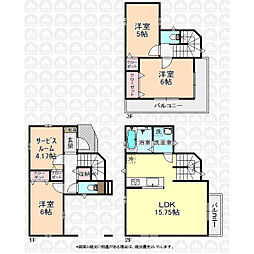 | 間取り | 4LDK 間取り内訳:洋室 6.5帖(1階)・リビングダイニングキッチン 20.3帖(2階)・洋室 4.5帖(3階)・洋室 5.6帖(3階)・洋室 6帖(3階) |