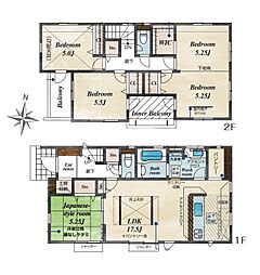 | 間取り | 4LDK 間取り内訳:リビングダイニングキッチン 16帖(1階)・洋室 7.5帖(2階)・洋室 5.3帖(2階)x3 |