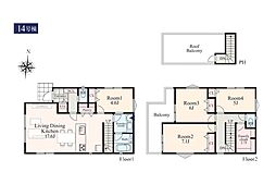 間取り内訳:リビングダイニングキッチン 17.6帖(1階)・洋室 4.6帖(1階)・洋室 6帖(2階)・洋室 7.1帖(2階)・洋室 5帖(2階)