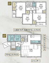間取り内訳:リビングダイニングキッチン 17.5帖(1階)・洋室 6.2帖(2階)・洋室 5.6帖(2階)・洋室 5帖(2階)・洋室 4.5帖(2階)