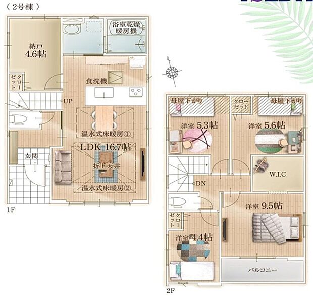 納戸やWIC付きで収納力豊富な間取です。南面バルコニーで通風・陽当たり良好!浴室乾燥や食洗機、床暖房