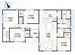 | 間取り | 4LDK(4LDK+ウォークインクローゼット) 間取り内訳:リビングダイニングキッチン 18帖(1階)・洋室 7.7帖(1階)・洋室 5.2帖(1階)・洋室 5.2帖(1階)・洋室 5.1帖(1階) |