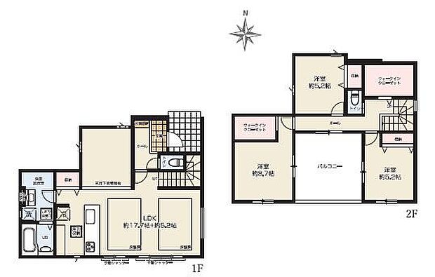 間取り内訳:リビングダイニングキッチン 22.9帖(1階)・洋室 8.7帖(2階)・洋室 5.2帖(2階)・洋室 5.2帖(2階)