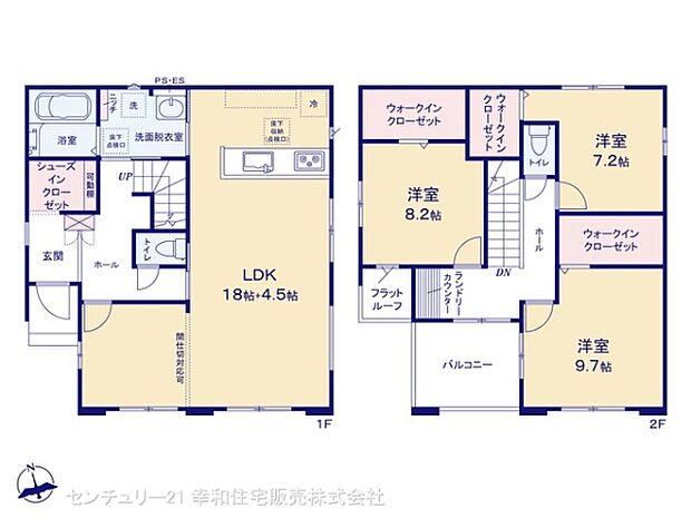 | 間取り | 3LDK 間取り内訳:リビングダイニングキッチン 22.5帖(1階)・洋室 9.7帖(2階)・洋室 8.2帖(2階)・洋室 7.2帖(2階) |