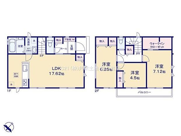 間取り内訳:リビングダイニングキッチン 17.6帖(1階)・洋室 4.5帖(2階)・洋室 6.2帖(2階)・洋室 7.1帖(2階)
