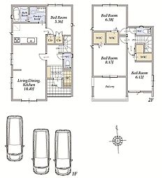 | 間取り | 4LDK 間取り内訳:リビングダイニングキッチン 16帖(1階)・洋室 4.5帖(1階)・洋室 12帖(2階)・洋室 6帖(2階)x2 |