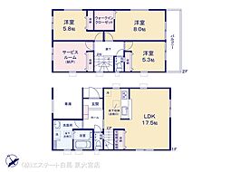 | 間取り | 3SLDK 間取り内訳:リビングダイニングキッチン 17.1帖(1階)・洋室 6.7帖(2階)・洋室 6帖(2階)・洋室 5.7帖(2階)・収納 4.5帖(2階) |