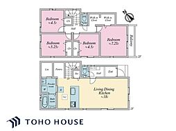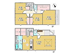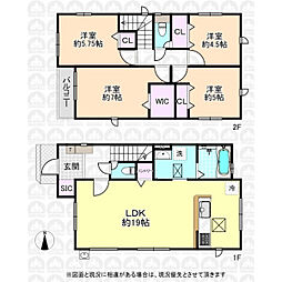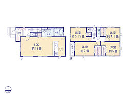 | 間取り | 4LDK 間取り内訳:リビングダイニングキッチン 19帖(1階)・洋室 7帖(2階)・洋室 5.7帖(2階)・洋室 5帖(2階)・洋室 4.5帖(2階) |