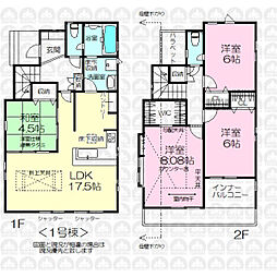 | 間取り | 4LDK 間取り内訳:リビングダイニングキッチン 20帖(1階)・洋室 5帖(2階)・洋室 5.2帖(2階)・洋室 5.2帖(2階)・洋室 7帖(2階) |