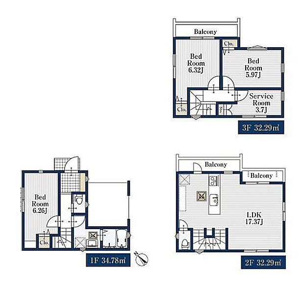| 間取り | 3LDK+S | 建物階 | 木造、地上3階建て |