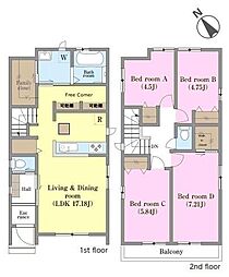 | 間取り | 4LDK 間取り内訳:リビングダイニングキッチン 19.5帖(1階)・洋室 5帖(2階)・洋室 5帖(2階)・洋室 5.4帖(2階)・洋室 7.7帖(2階) |