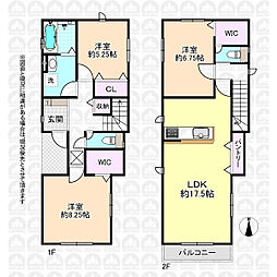 | 間取り | 3LDK 間取り内訳:リビングダイニングキッチン 17.5帖(2階)・洋室 6.7帖(2階)・洋室 8.2帖(1階)・洋室 5.2帖(1階) |
