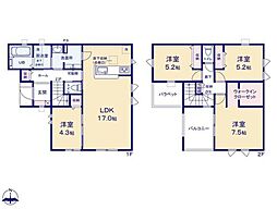 | 間取り | 4LDK 間取り内訳:リビングダイニングキッチン 23.2帖(1階)・洋室 8.5帖(2階)・洋室 5.9帖(2階)・洋室 5.2帖(2階)・洋室 4.5帖(2階) |