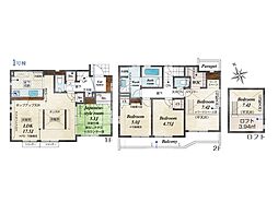 敷地116 超、4LDK+ロフト+WICのゆとりある住まい。床暖房付きLDK約17.5帖で快適な団らん空間。前面道路6mで駐車2台可能、収納や設備も充実した実用性の高い一邸。