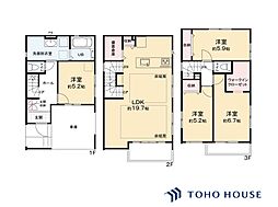 • 2号棟【間取り図】LDK19.75帖 リビング床暖房設置 備蓄倉庫あり