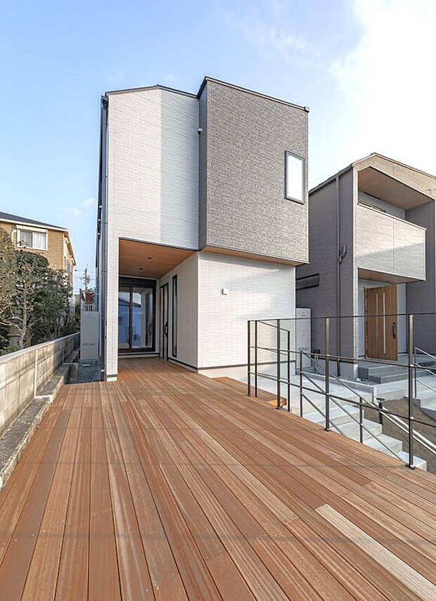 • 室内と屋外をつなぐウッドデッキは、開放感あふれるくつろぎ空間。洗濯やティータイム、家族の団らんなど多彩に使え、暮らしの幅を広げます!