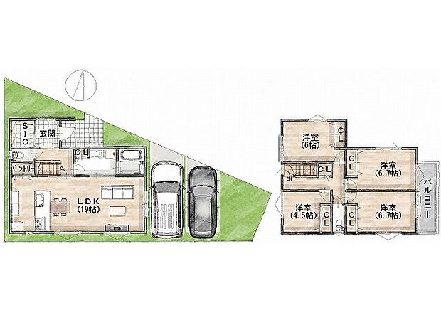 • 「建築条件付き土地」の「建物プラン例」は、土地購入者の設計プランの一例であり、プランの採用可否は任意です。