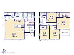 | 間取り | 4LDK 間取り内訳:リビングダイニングキッチン 21帖(1階)・洋室 8帖(2階)・洋室 6.5帖(2階)・洋室 4.5帖(2階)・洋室 4.5帖(2階) |