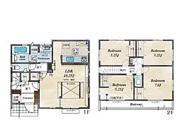 間取り内訳:リビングダイニングキッチン 16.7帖(1階)・洋室 7帖(2階)・洋室 6帖(2階)・洋室 5.2帖(2階)・収納(2階)