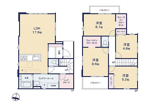 • 「建築条件付き土地」の「建物プラン例」は、土地購入者の設計プランの一例であり、プランの採用可否は任意です。