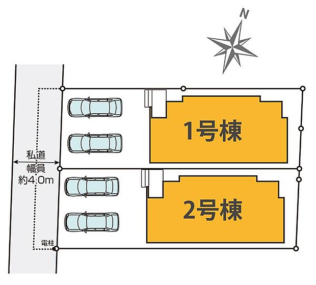 | 土地面積 | 135.50m2~135.69m2<私道負担面積13.48m2 私道負担割合1/1> | ||