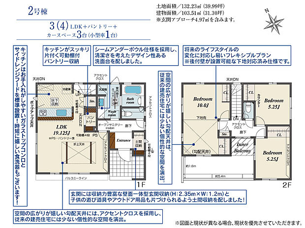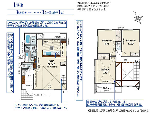 | 建物面積 | 99.15m2(約29.99坪)~103.51m2(約31.31坪) | ||