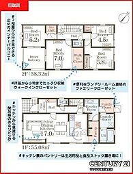 | 間取り | 4LDK 間取り内訳:洋室 20.2帖(1階)・洋室 8.2帖(2階)・洋室 4.5帖(2階)・洋室 4.5帖(2階)・洋室 4.5帖(2階) |
