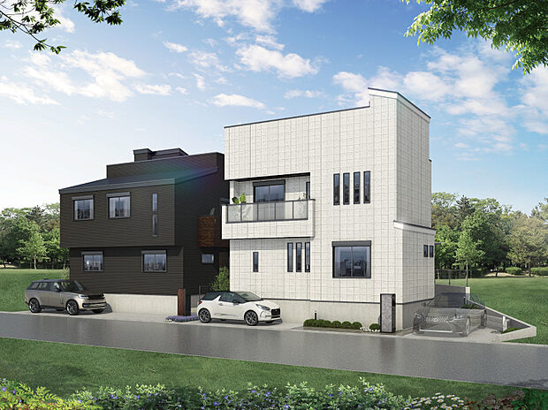 • 【【外観完成予想パース】】南側約7.5m道路に面し開放的。外壁材には防火性や耐久性に優れた「へーベルパワーボード」を採用しています。※図面を基に作成しています。現況と異なる場合は現況を優先いたします。