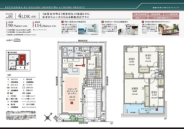 | 土地面積 | 90.05m2(約27.24坪)~94.24m2(約28.50坪) | ||