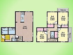 | 間取り | 3LDK 間取り内訳:リビングダイニングキッチン 19帖(1階)・洋室 7帖(2階)・洋室 5.5帖(2階)・洋室 5.2帖(2階) |