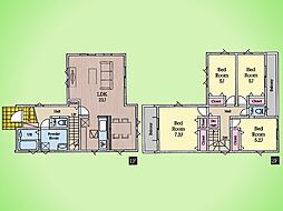 | 間取り | 3LDK 間取り内訳:リビングダイニングキッチン 20.5帖(1階)・洋室 7.7帖(2階)・洋室 6.1帖(2階)・洋室 5帖(2階) |
