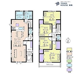 • 「建築条件付き土地」の「建物プラン例」は、土地購入者の設計プランの一例であり、プランの採用可否は任意です。