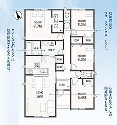 コンパクトな間取りながらウォークインクローゼットや階段下収納など収納を確保しています♪玄関にはシューズボックスもあります◎食洗機、浴室乾燥が標準装備!駐車場3台分を確保し、来客時も安心です♪
