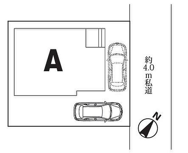 北東側約4.0m 私道、私道持分:15.98平米×1/1、16.58平米×1/1