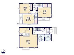 間取り内訳:リビングダイニングキッチン 15帖(1階)・洋室 6.1帖(2階)・洋室 6帖(2階)・洋室 4.5帖(2階)