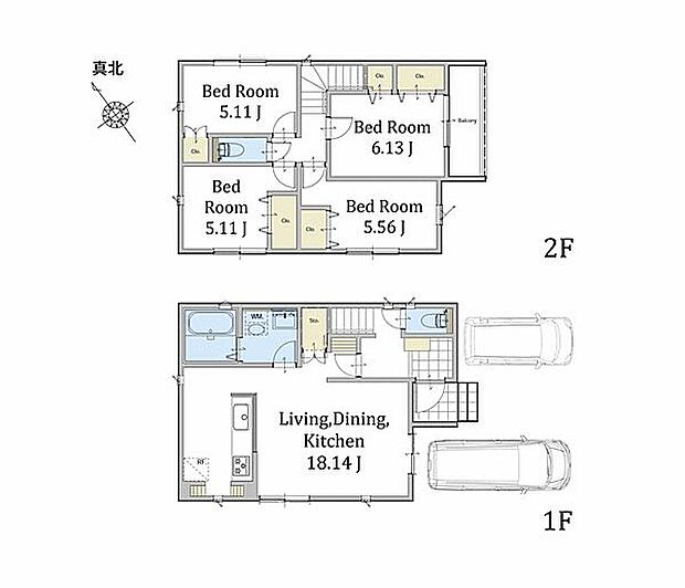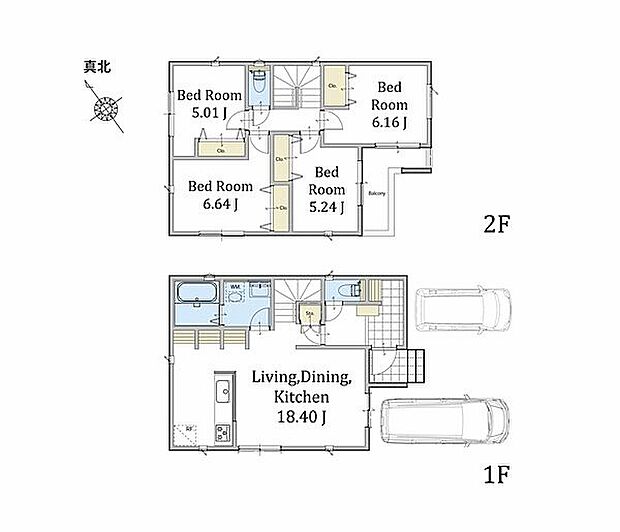 2台駐車可能なカースペース付き。LDKは広々18畳の新築分譲住宅です。