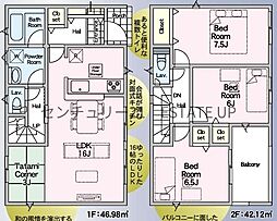 | 間取り | 4LDK 間取り内訳:リビングダイニングキッチン 16帖(1階)・和室 3畳(2階)・洋室 7.5帖(2階)・洋室 6.5帖(2階)・洋室 6帖(2階) |