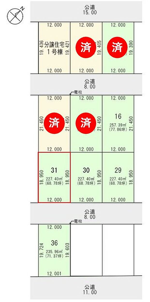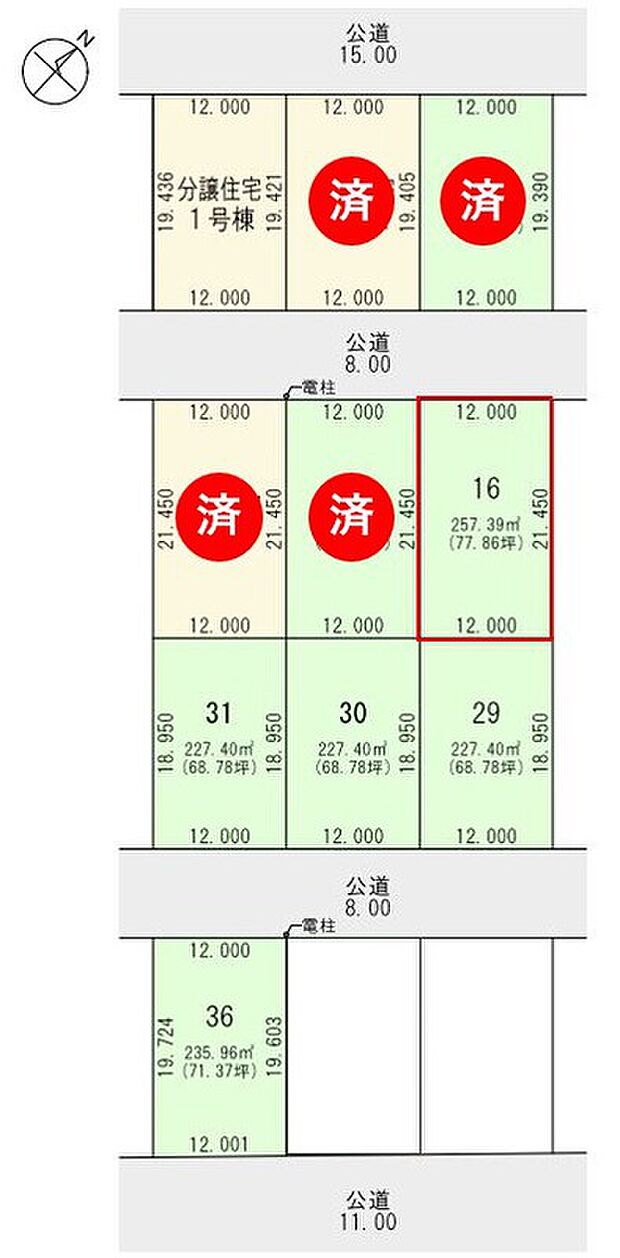 | 土地面積 | 227.40m2(68.78坪)~257.39m2(77.86坪) | ||