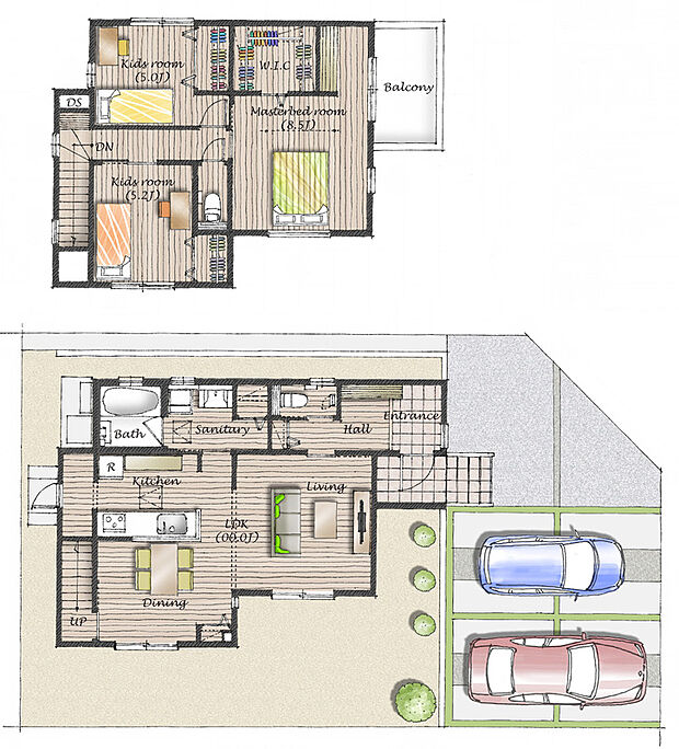 | 建物面積 | 94.39m2(約28.55坪)~101.85m2(約30.80坪) | ||
