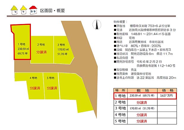 | 土地面積 | 170.93m2(51.70坪)、230.59m2(69.75坪) | ||