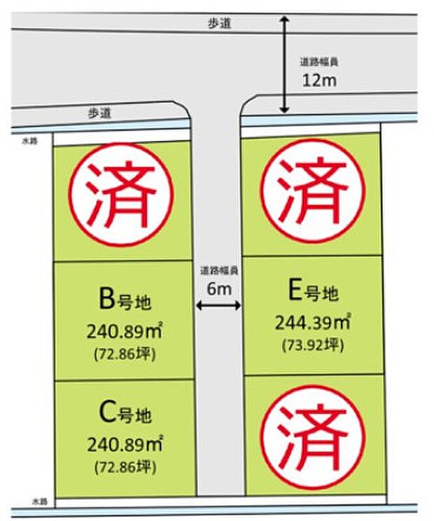 | 土地面積 | 240.88m2(3区画)~244.41m2(3区画) | ||