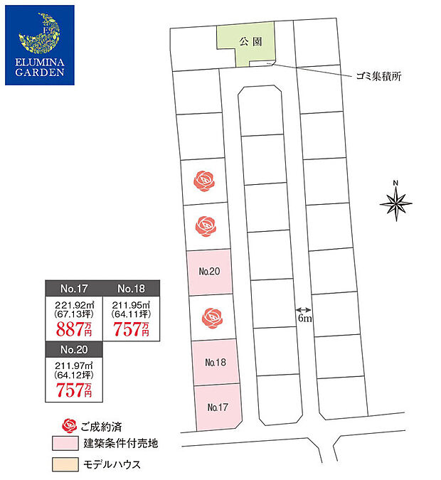 | 土地面積 | 211.95m2(64.11坪)~221.92m2(67.13坪) | ||