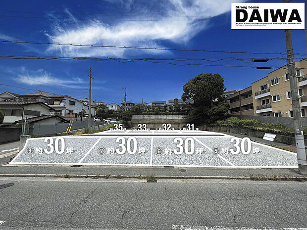 【 DAIWA CITY 】 ダイワシティ垂水区高丸 全8区画 販売開始しました! 南東側道路に面しているので日当たり良好♪ 小学校まで徒歩約6分なのでお子様のご通学安心!