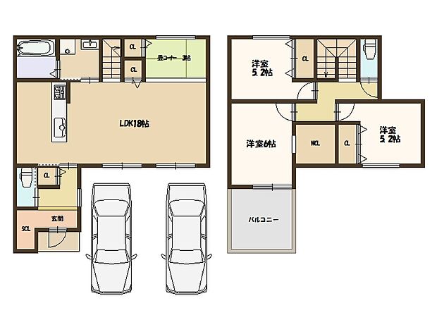 • 【【プラン例】】暮らしの中心となるLDKは隣家からの視線や採光に配慮し2階に設置。3方向に窓を設け仕切りのないワンルームにすることで明るく開放的な空間を実現。