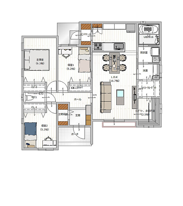 | 間取り | 3LDK+LR+SIC+FC(2号地) |