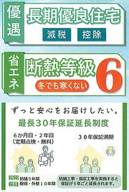 長期優良住宅、断熱等級6、設計住宅性能評価・建設住宅性能評価取得物件、駐車場3台可能です。子育てグリーン住宅支援金取得物件です。