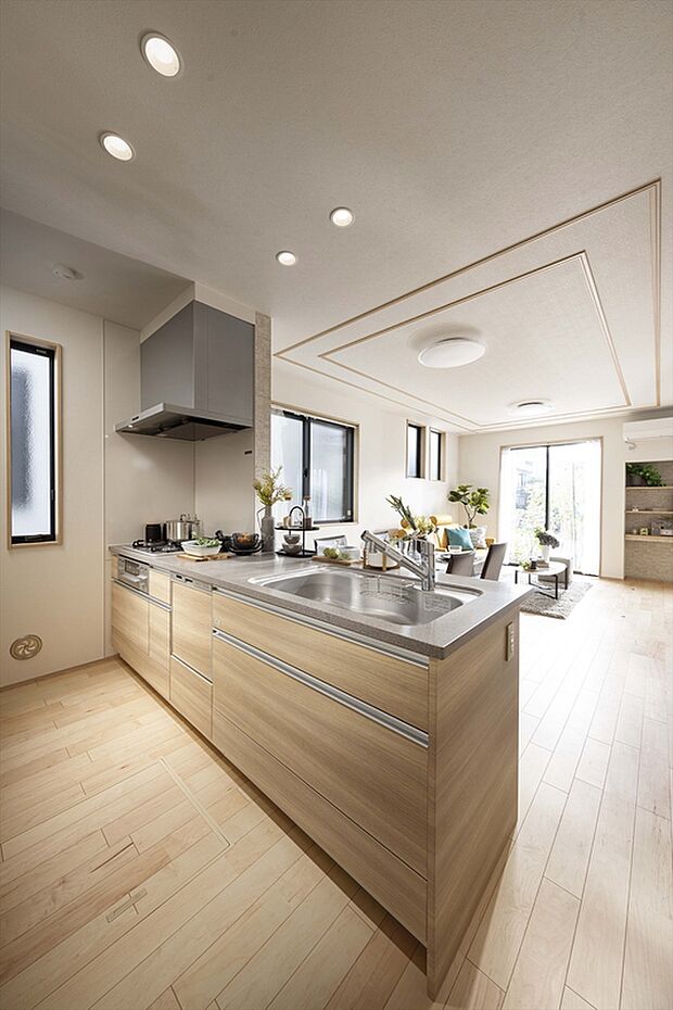 • 【タッチレスグース型浄水栓】家事の負担を軽減するタッチレスの機能的な浄水器付きハンズフリー水栓を全棟標準装備。デザインと機能が一体になった段差のないスタイリッシュなスパウトデザイン。