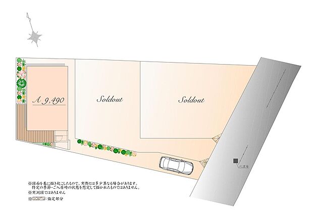 • 「建築条件付き土地」の「建物プラン例」は、土地購入者の設計プランの一例であり、プランの採用可否は任意です。