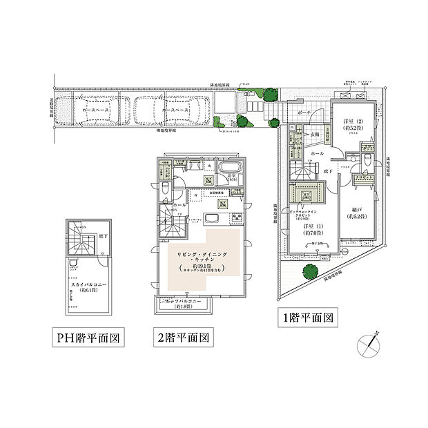 間取り 2LDK+S(納戸)~4LDK 建物階 木造・2/3階建・枠組壁(2×4)工法