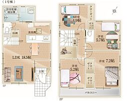 | 間取り | 2SLDK 間取り内訳:リビングダイニングキッチン 17.4帖(1階)・洋室 5.5帖(2階)・洋室 7.2帖(2階)・収納 4.7帖(2階) |